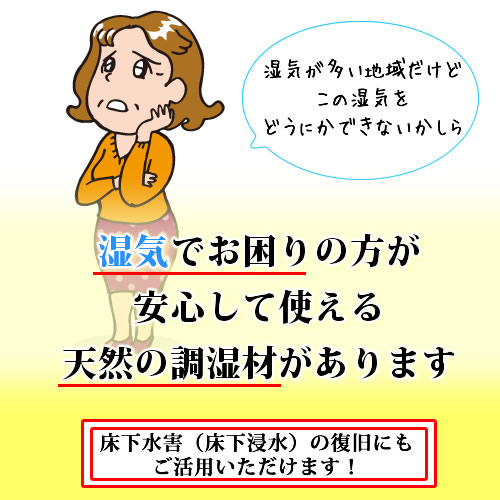 すでに建っている家に使う場合、床下調湿材を床下敷き詰めることにより、湿度が多い時湿気を吸い乾燥した時に抱え込んでいた湿気を放出してくれる天然調湿機能を持っています。
